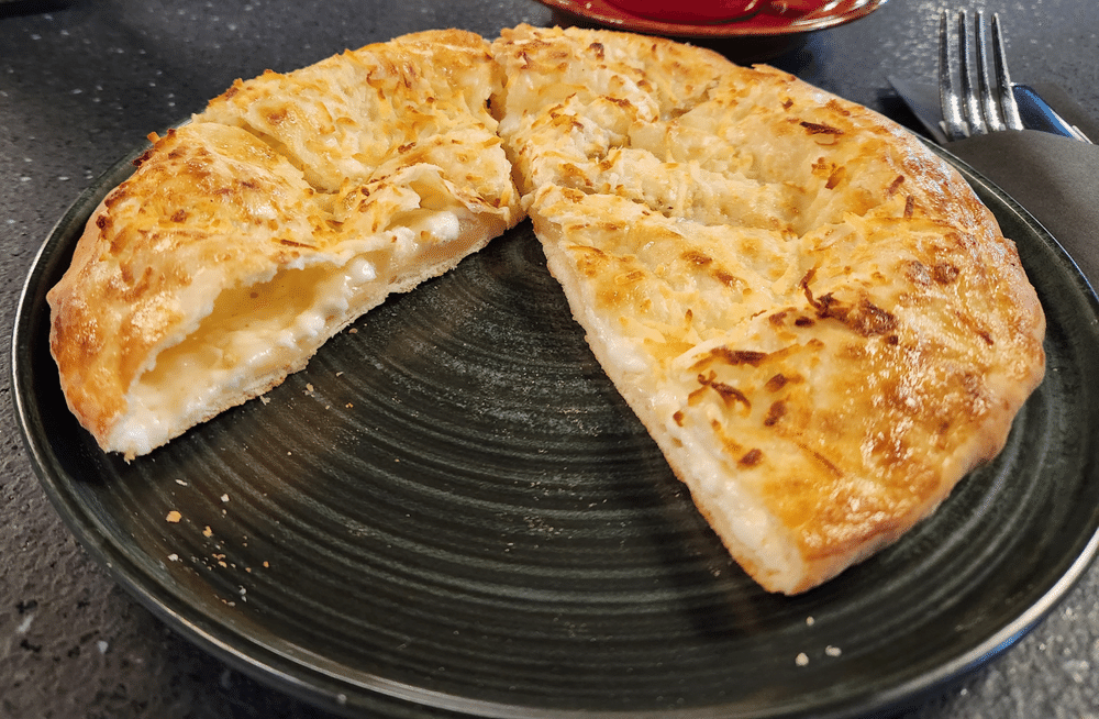 Тонкая лепешка из пшеничного теста с начинкой из домошних сыров панир и сулугуни