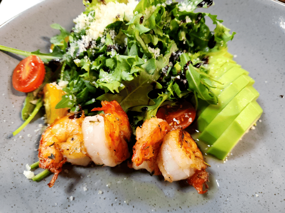 Микс-салат с тигровыми креветками и авокадо