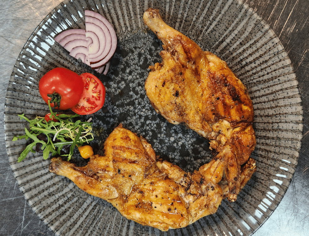 Цыпленок-корнишон, зажаренный под прессом