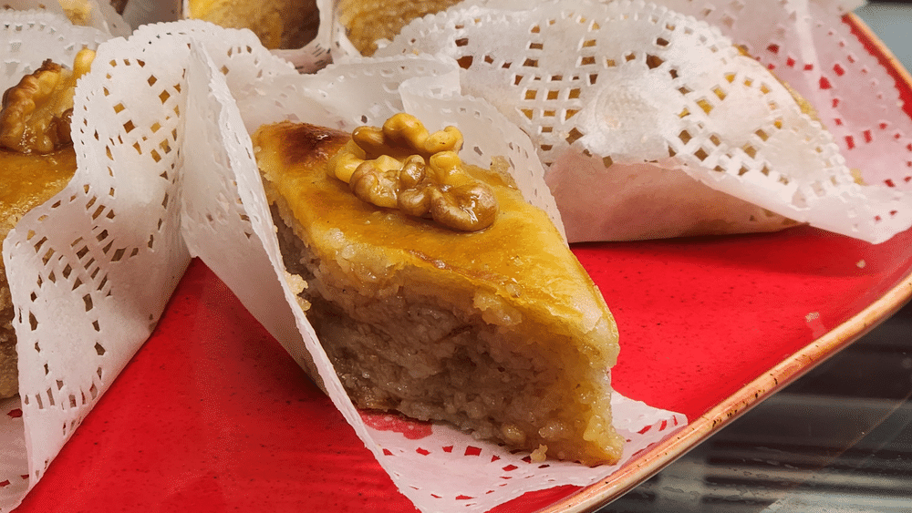 Традиционный азербайджанский десерт из теста с грецким орехом, медом и розовой водой